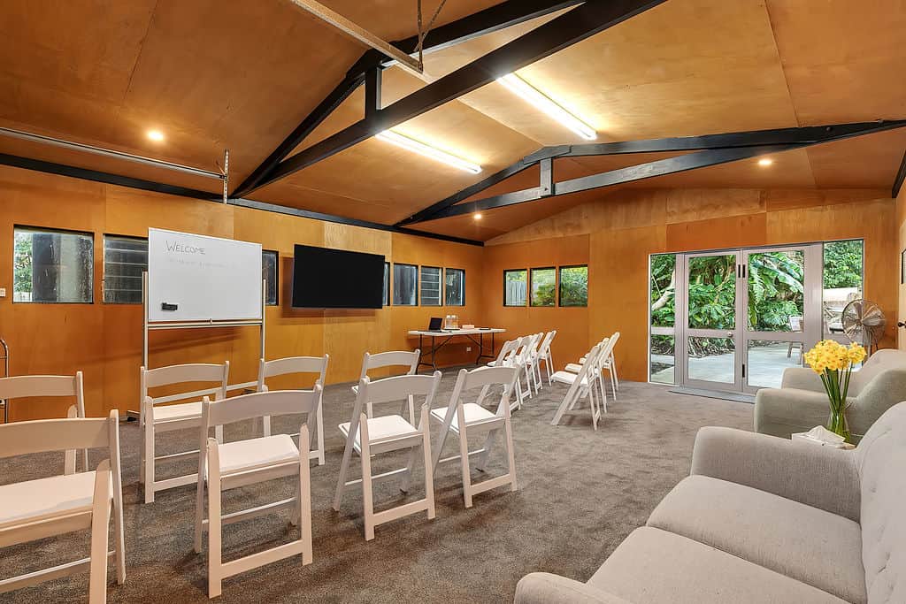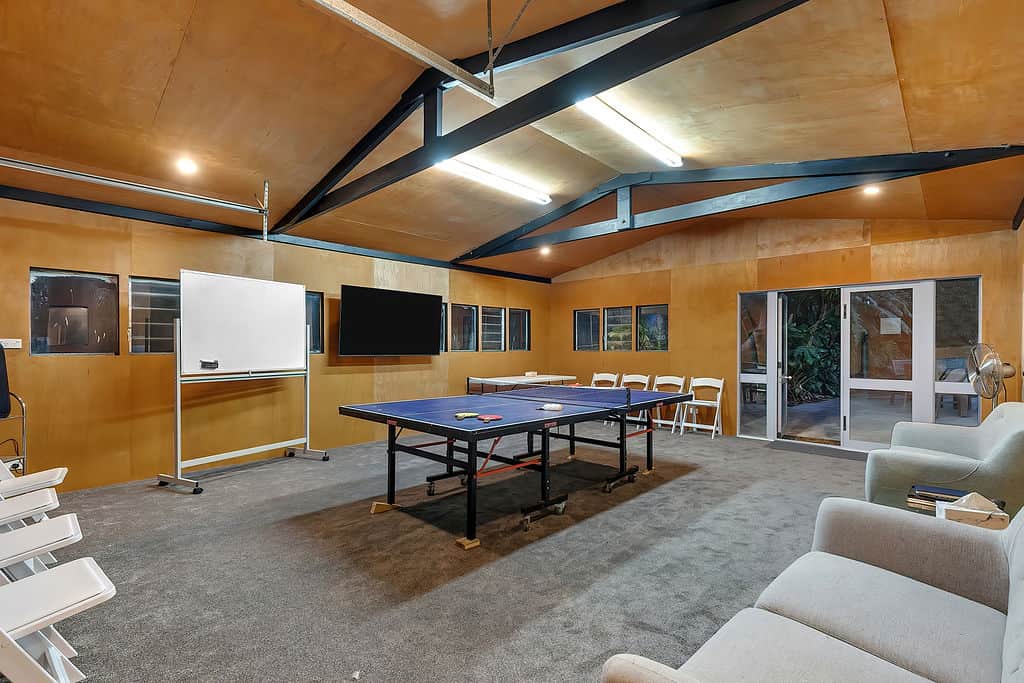 Sleeps up to 20 people. Includes a large fully equipped outdoor kitchen, dining, environmental spaces and an additional living area that can be utilised as a meeting/conference room or for recreational activities.